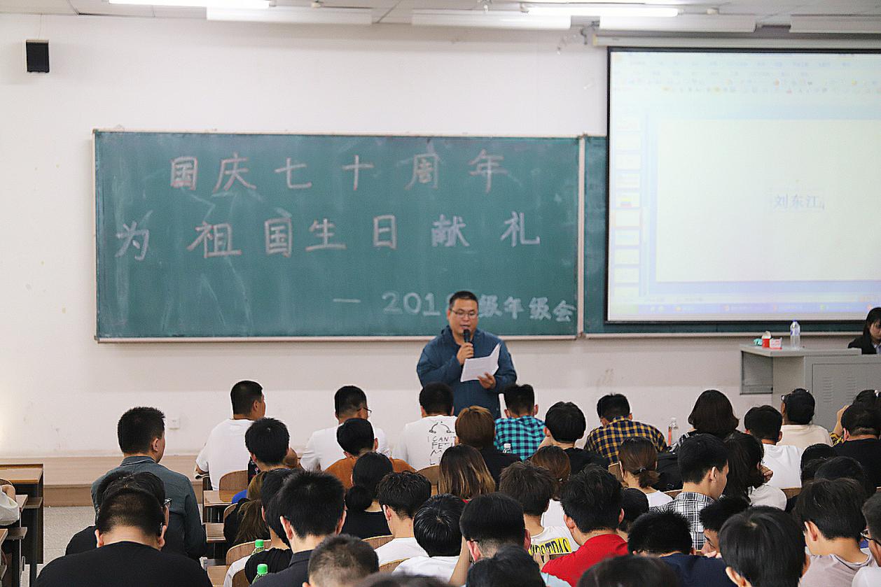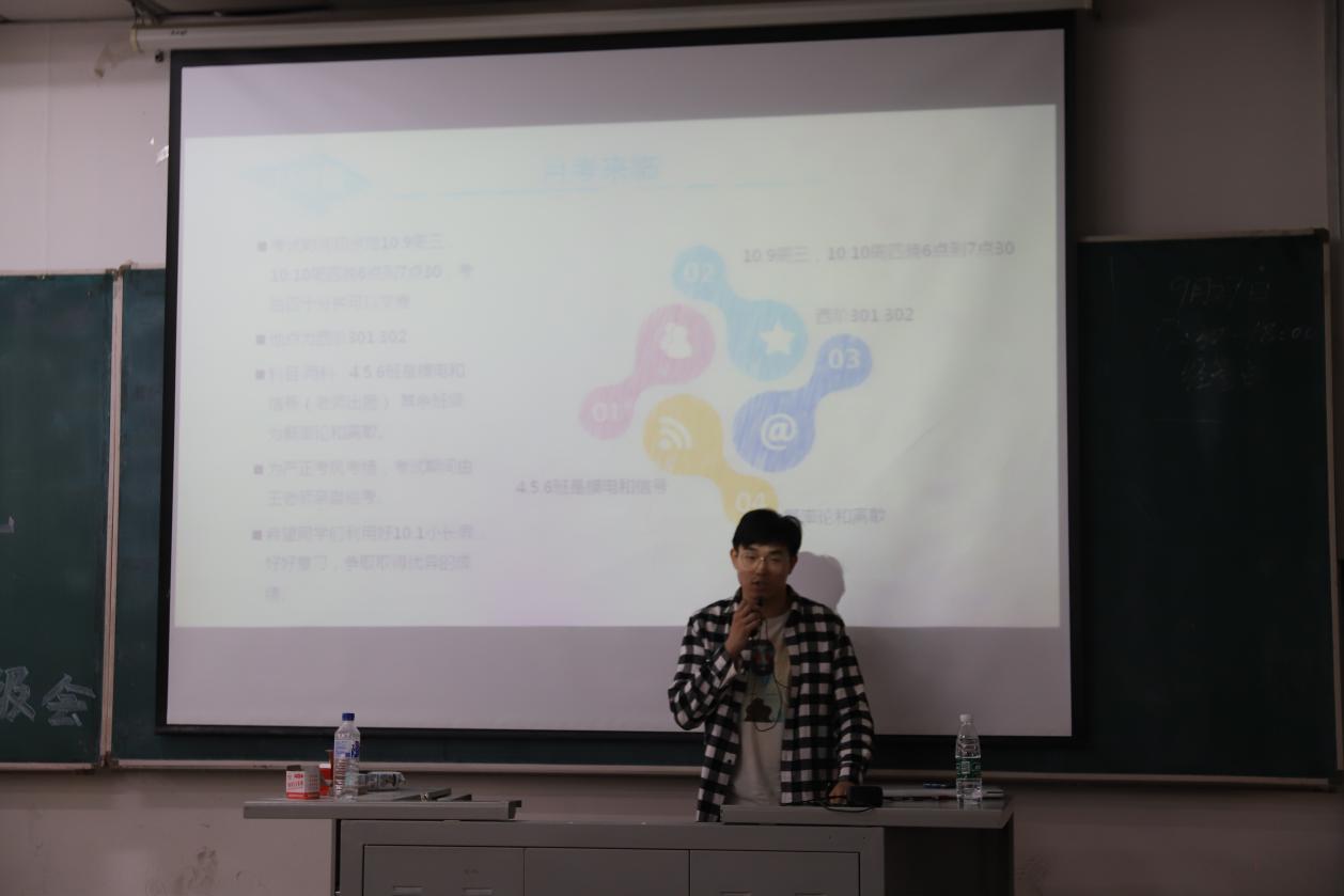 会议在庄严的国歌声中拉开序幕。首先,由主持人对国庆期间的情况安排进行了介绍。会议内容共分为假期安全教育、月考、工行杯大赛、团员证明及医保办理、趣味拓展训练、就业信息、理想信念等方面。在各学生代表的细致讲解下,同学们了解到关于本次会议的全部内容并认真记录。最后,王珺楠老师总结了近期的工作情况并就会议内容进行了补充,着重强调了当代大学生应为理想而努力奋斗。