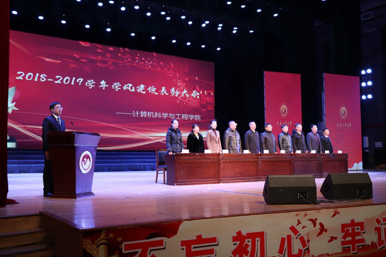 表彰大会由学院党委副书记季宏伟主持。在全体到会师生齐唱国歌后,学院副院长郑虹宣读了《关于表彰2018-2019学年学风建设工作先进集体及优秀个人的决定》,院长助理程超宣读了《关于表彰2019年大学生科技竞赛月优秀团队及个人的决定》。