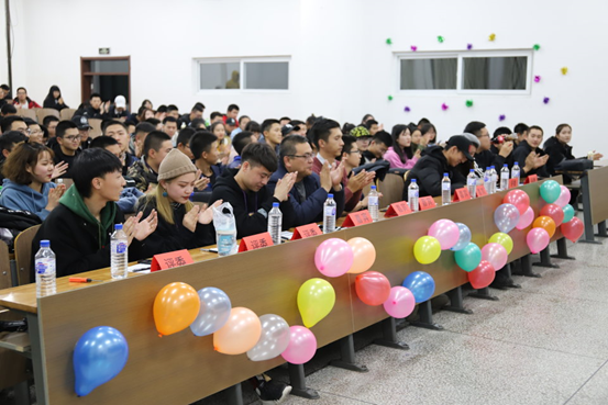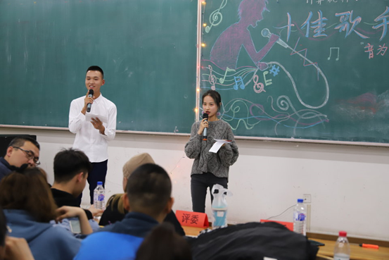 新闻网讯(通讯员王馨瑶刘兰)歌声飘荡,余音绕梁,青春时光,梦想飞扬。11月14日晚6时, 我院于北湖校区东阶201教室举行2018级“音为爱 梦承载”十佳歌手比赛。旨在提高大学生综合素质,培养大学生校园艺术氛围。我院团委书记兼2018级辅导员王珺楠老师及学生代表担任本次比赛评委,各学院老师代表作为嘉宾出席本次比赛。
