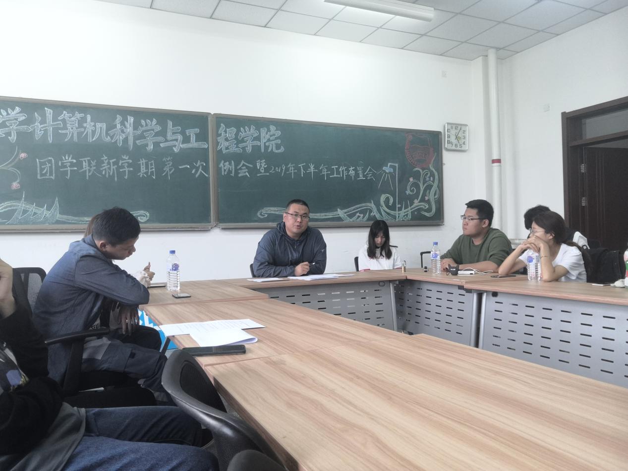 新闻网讯(通讯员葛茹雪)为促进新学期工作的开展,推动学院学风建设。我院于9月15日17时在北湖校区1710教室召开了团学联新学期第一次例会暨2019年下半年工作布置会。会议由我院团委书记王珺楠主持,团学联各相关部门总负责人参加了本次会议。