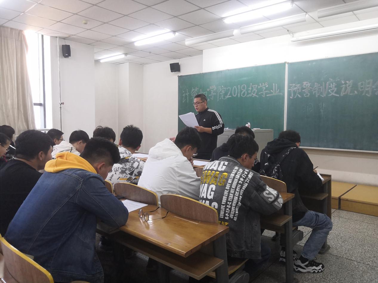 新闻网讯(通讯员葛茹雪)为加强学风建设,做好学业困难学生帮扶工作。我院于9月24日6时30分在北湖校区1320教室召开了2018级学业预警制度说明会。会议由我院团委书记兼2018级辅导员王珺楠主持,2018级各班级常委及成绩观测组全体成员参加了本次会议。