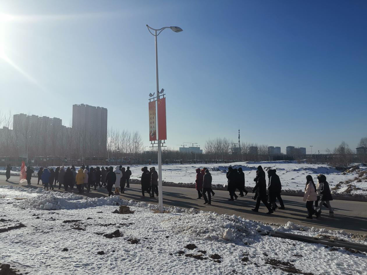 12时15分,所有教职工从计算机办公楼前出发合影留念。参与活动的老师徒步往返于我校北湖东、西两个校区,教工们在徒步行走的过程中相互激励,共帮互助;在行走中坚定内心执着的信念,在行走中发现更好的自己。一路欣赏沿途冬景,欢声笑语,见证着北湖校区主楼、计算机楼、图书馆、体育馆、体育场等主体建筑拔地而起,共同畅谈工业大学的美好明天。