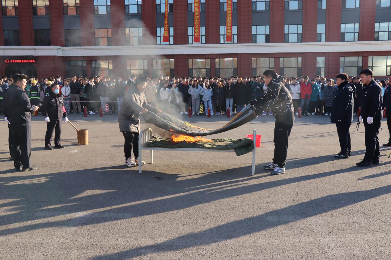 讲座结束后,学院党委书记周文明进行了关于加强消防安全工作的动员讲话,他要求全体师生要提高消防安全意识,掌握相关消防安全知识和技能,共同营造安全、和谐、舒适的校园工作、学习和生活环境,开创学院各项工作发展的新局面。随着周书记宣布消防演练活动开始,工作人员鸣放消防警报,计算机教学楼内师生进行有序地疏散演练,使在场师生在演练中纠正问题,防患于未然。随后,安全工作处工作人员为在场师生讲解了灭火器材的操作和床铺初期火灾扑救的方法,在工作人员的指引下师生代表进行灭火演练。