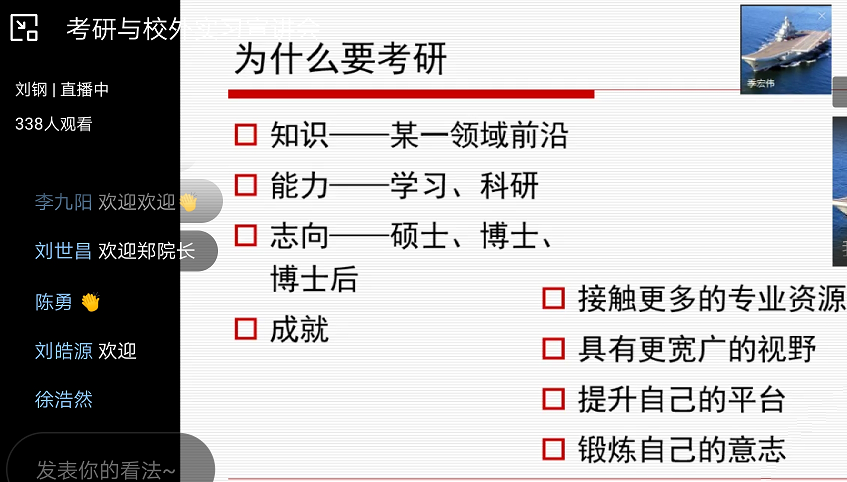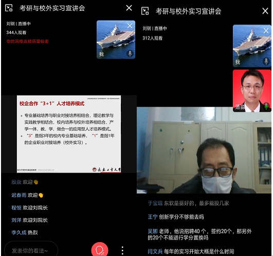 新闻网讯(通讯员王馨瑶)5月27日晚6时,bevictor伟德国际1946召开了2017级学生考研、校外就业实训网络宣讲会。本次会议利用企业微信平台进行直播,旨在为即将面临考研和就业的2017级学生进行指导,并做好相关政策的讲解。我院副院长刘钢、副院长郑虹、计算机系分管国际教育学院教学副主任姚庆安、学院校企合作部主任汤淼、国际教育学院团委书记于伟及我院学生党支部书记17级学生辅导员陈磊出席本次会议。会议由我院党委副书记季宏伟主持。