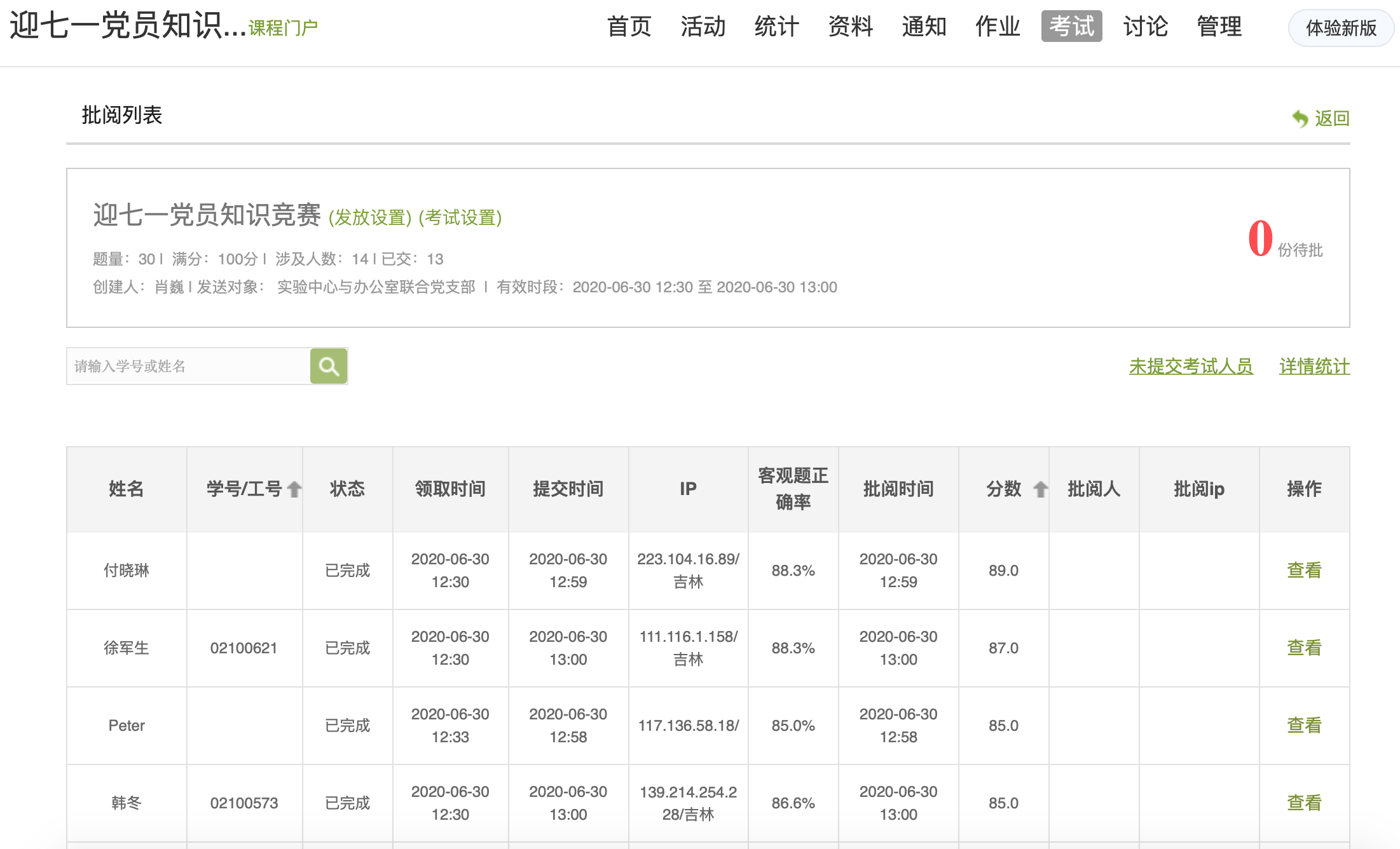 图4实验中心与办公室联合党支部竞赛成绩截图