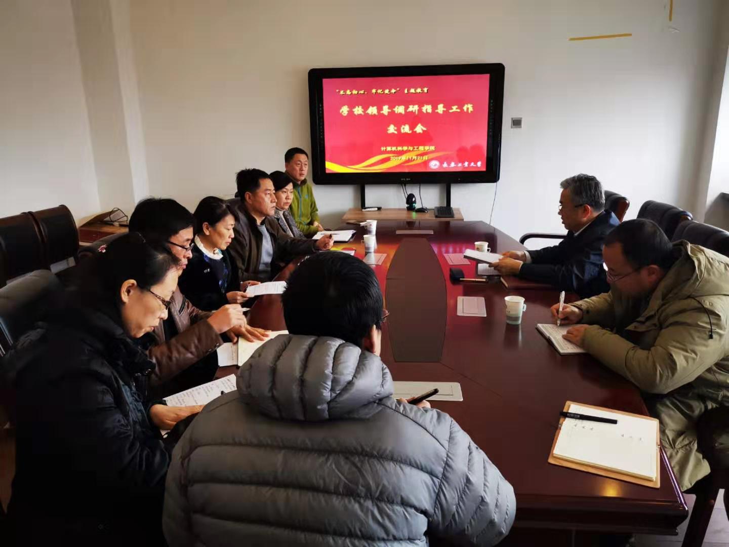 11月21日,学校党委书记王忠,组织部干部与人才工作科科长董辰君一行两人来我院对“不忘初心,牢记使命”主题教育活动开展情况进行调研,学院党政领导及相关教师代表参会。