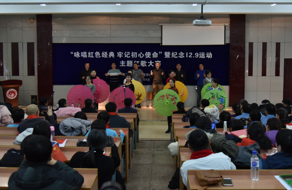 新闻网讯(通讯员 刘惠春)2019年12月4日,bevictor伟德国际1946党委在南湖校区综合三报告厅开展了“咏唱红色经典 牢记初心使命”暨纪念12.9运动主题红歌大赛,本次活动是学院党委开展“不忘初心,牢记使命”主题教育系列实践活动之一。受邀莅临本次主题红歌大赛的学校领导有副校长王二辰、党委宣传部部长王鸣晖、党委组织部部长郭立祥。学院全体教师和学生党员代表参加了活动。