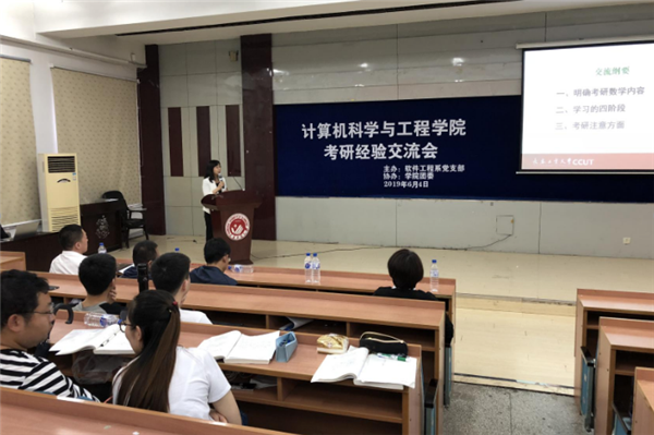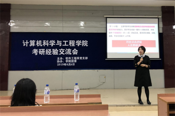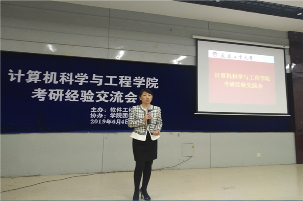 新闻网讯(通讯员 宁静峰)为进一步提高我院学生的考研热情,使学生明确考研目标,了解更多考研信息,掌握相关考研技巧,6月4日晚18:00,由软件工程系党支部主办、学院团委协办的考研经验交流会在南湖校区综合三报告厅举行。学院党委书记任红、副院长王红梅、副院长韩旭明、党委副书记季宏伟及软件工程系的党员教师代表参加了本次活动。交流会邀请数学与统计学院贺莉、外国语学院李秀文两位老师主讲,会议由软件工程系党支部书记宁静峰主持。