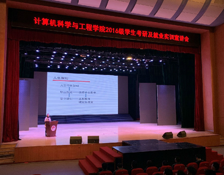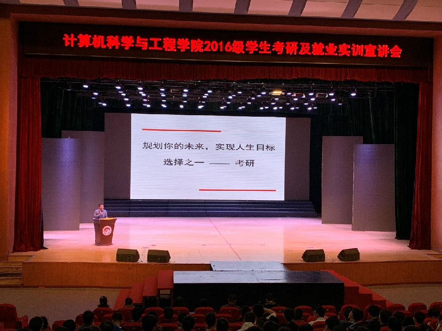 新闻网讯(通讯员 庄园)4月23日中午12点20 分,bevictor伟德国际1946在南湖校区大学生活动中心一楼报告厅召开考研、就业实训宣讲会。本次大会旨在为即将面临考研和就业的2016级学生进行指导,并做好相关政策的讲解。学院党委书记任红,副院长刘钢、郑虹、韩旭明,院长助理程超,计算机系副主任姚庆安,学院校企合作部主任汤淼, 16级学生辅导员庄园及2016级全体学生参加了本次活动。大会由党委副书记季宏伟主持。