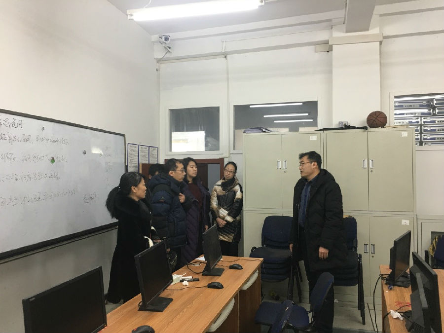 张明耀对学院分布在老图书馆、电教各楼层的实验室、大学生创新实践基地、研究生培养和科研用房等一一进行查看,仔细了解本科生实验室的实验开设情况和使用频率,深入了解大学生创新实践基地的使用情况和取得的成绩,深入了解研究生培养和科研用房的使用情况,并实地考察了计算机与信息技术研发中心的用房情况。调研期间,副院长王红梅介绍了学院教学科研用房比较分散且房间面积有限,不利于学院管理等情况。张明耀对在教学科研用房比较紧张的情况下,学院教职工能克服困难,围绕学校、学院的中心工作积极开展教学科研工作给予了高度的肯定。