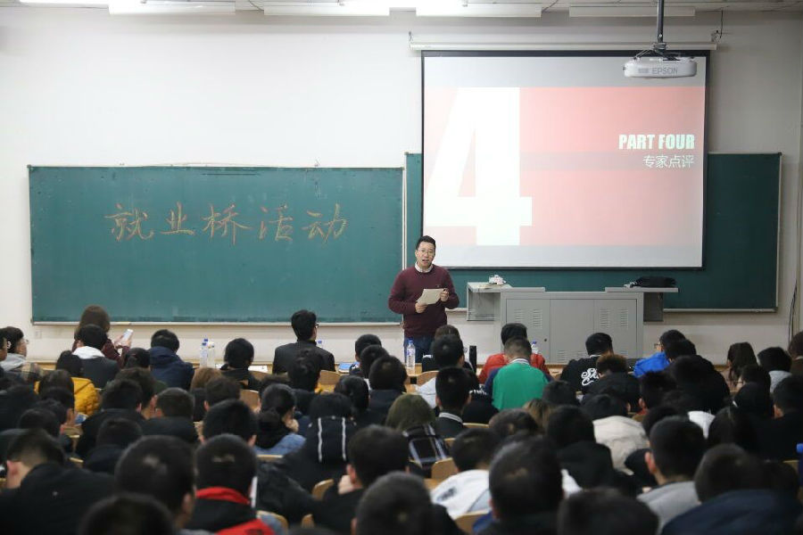 新闻网讯(通讯员葛茹雪 徐中秋 王鑫茹)bevictor伟德国际1946团委于3月24日晚6点在北湖校区西阶201教室举办“新时代-致才杯”就业桥比赛。本次活动旨在鼓励同学们积极参与社会实践,认真做好职业生涯规划。东北师范大学外语学院副教授、博士后、大学生创业联盟指导教师贺莉老师,吉林省新时代科技有限公司技术总监李傅政老师,吉林省新时代科技有限公司大连分公司总经理邢善玉老师及学院团委书记王珺楠老师作为嘉宾及评委出席了本次活动。2018级全体学生参加了本次活动。