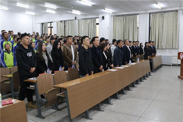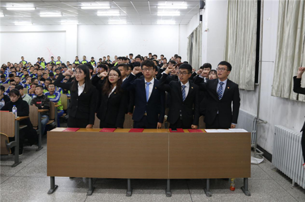 大会在庄严的国歌声中拉开了序幕。首先,由第二十七届学生会主席丛龙旭从成绩概况及问题清单等方面对过去一年的工作进行了总结汇报,并表达了对新一届学生干部的美好祝愿和鼓励。随后,王珺楠老师宣读了新一届团委、学生会、社团联合会主要学生干部名单。接下来,第二十八届学生会主席乔俊豪代表新一届团学干部做工作展望,表达工作决心和信心。第二十八届社团联合会主席孙冠航带领新当选学生干部宣誓,表达为校服务,为学生服务的工作热情和决心。季宏伟老师为团学联学生干部代表颁发了聘书,他对新一届学生干部表示祝贺的同时,充分肯定了上一届学生干部的工作和成绩,并对新当选的学生干部提出了要求和希望:要求他们要加强学习,内练素质,外塑形象,工作中要团结协作,凝心聚力。力争成为一支“讲奉献、勇担当、有作为”的高效的团学干部队伍,为学院的共青团事业增光添彩!