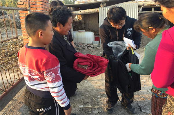 在贫困户家里、在送慰问物资的现场让我们感受到了老乡们的热情,当老乡穿上送的棉衣时感激之情溢于言表,甚至有的流下了激动的泪水,这也让我们感受到了爱心帮扶工作的意义。