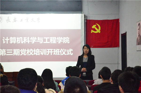 开班仪式在庄严的国歌声中开始,由任红书记作开班动员。任书记从当前大学生的入党动机谈起,强调了正确的入党动机的重要性,对学员们提出三点要求:一是要认真学习党的基本理论知识、党的历史,特别要认真学习中国特色社会主义理论体系,努力提高政治理论素养,端正入党动机,坚定马克思主义信仰,坚定走中国特色社会主义道路,模范践行社会主义核心价值观。二是要在日常学习、工作、生活中以一名共产党员的标准严格要求自己,切实发挥模范带头作用,争取早日在思想上、行动上、组织上加入到党的行列中。要突出先进性的要求,争做一名优秀大学生;要认真践行党的根本宗旨,全心全意为同学服务;要发挥骨干核心作用,影响带动周围同学成长成才。三是要珍惜党校培训这一宝贵的集中学习机会,把集中学习培训和日常学习有机结合起来。最后,任书记预祝分党校第三期积极分子培训班取得圆满成功。仪式在热烈的掌声中结束。