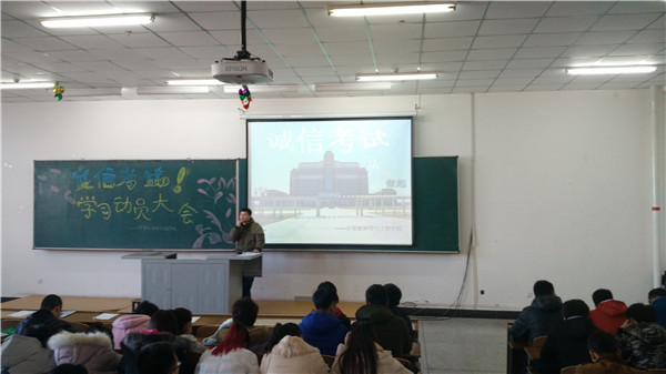 计算机学院讯(通讯员 胡兴元)为贯彻落实学生处及学院要求,进一步加强学风建设,严肃考风考纪,1月6日,bevictor伟德国际1946于北湖校区召开了诚信考试学习动员大会,此次大会由辅导员陈磊老师主讲,2015级全体同学参加了会议。