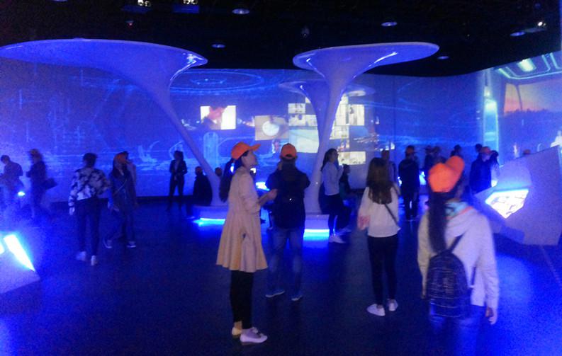 中国光学科学技术馆内设馆内设置奇妙之光、光的探索、光的时代、光彩世界、千年光辉、神州光华、光的未来七个主展厅,讲述了从历史到近代人们对光学的逐步探索及了解,并大胆展望了未来光学的各种应用,置身360度的光学投影下,同学们无不称叹。