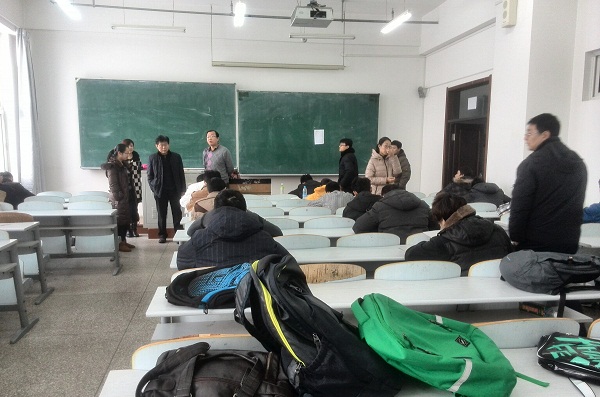 bevictor伟德国际1946讯(通讯员钟秋霖)为了切实落实学校“关于做好2014-2015学年第一学期期末复习考试工作的意见”,确保期末大考顺利进行,bevictor伟德国际1946的领导们高度重视,于2014年12月30日9:40分,院长王宏志、党委副书记陈绍辉、副院长陈志雨、郑虹、林园校区办公室人员以及辅导员老师对本学期期末林园校区考场进行巡视。
