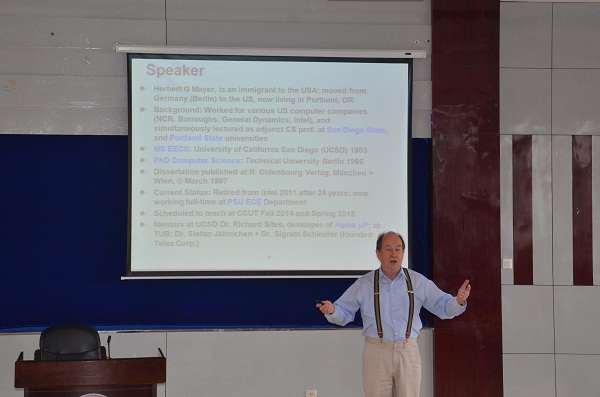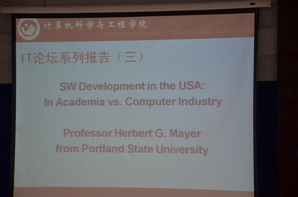 Herbert教授是美国波特兰州立大学电气与计算机系的专职教授,曾经是英特尔公司的一位资深的技术及管理人员。这次讲座中,Herbert教授从学术和计算机工业的角度为大家介绍了软件工程在美国的发展情况,并且与大家分享了他的工作经验和经历,为大家的职业发展提出了宝贵的建议。