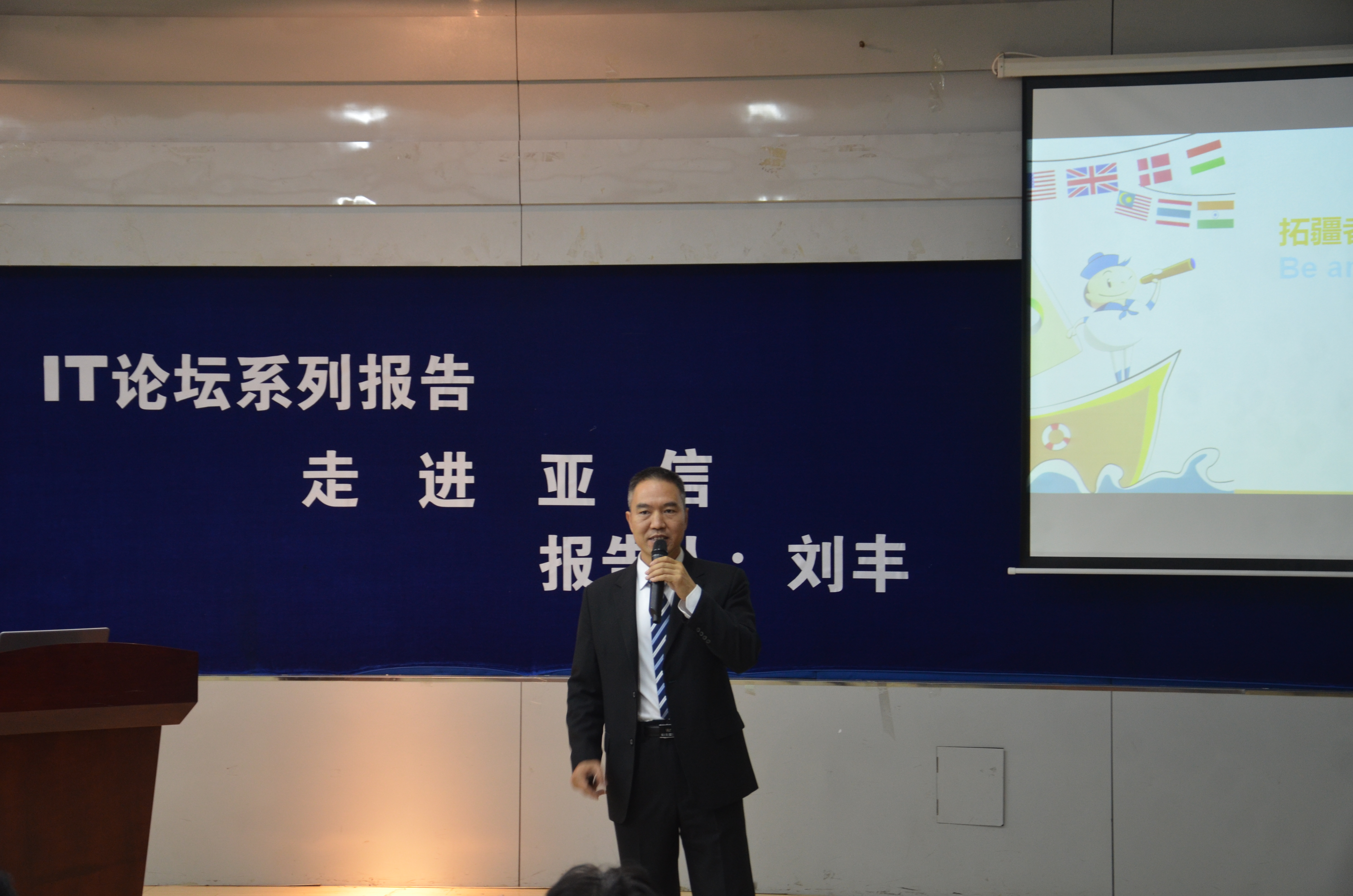 亚信集团股份有限公司是中国最大、全球收入和市值均为排名第二的电信BSS/OSS提供商。这次来我校进行访问,主要是就深化校企双方在学生实训实习就业实施过程中的合作、完善学生学分置换制度、改进人才招聘机制等问题与相关学院的领导进行探讨与研究。访问会后,亚信集团有限公司的赵辉、刘丰两位副总裁在综合三教室为我校学生进行了IT论坛系列报告。
