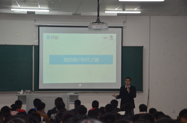 新闻网讯(通讯员:王珺楠)10月17日晚6时,由bevictor伟德国际1946举办的“我的新IT时代之路”的主题报告在北湖校区西阶201多媒体报告厅举行。学院党支部书记兼2014级新生辅导员王珺楠主持了此次报告会,主讲人中软国际北京ETC副总经理、高级项目经理周海先生以及我院2014级学生出席了本次报告会。