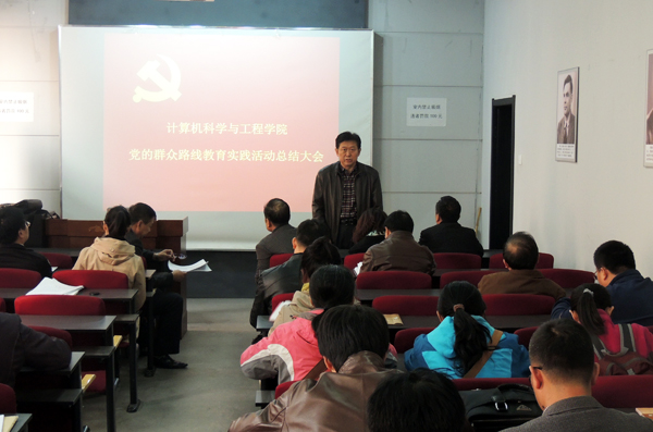 王伟书记首先回顾了bevictor伟德国际1946教育实践活动开展的总体情况,从学院教育实践活动的基本作法、主要成效、存在的不足,今后努力方向等四个方面详细作了总结。在教育实践活动中,全院党员和教职工参与教育实践活动的积极性普遍提高,关心学院事业发展热情高涨,呈现出良好的发展态势。第三督导组组长胡敬军代表督导组,对计算机学院提了四点要求:一是进一步加强党的组织建设、思想建设和作风建设,这是党组织的长期任务,要抓好;二是继续做好整改措施落实工作,将师生在党的群众路线教育实践活动中提出的建议和意见真正落到实处,广泛听取群众意见继续做好;三是希望着眼长远,将党的群众路线教育实践活动能形成长效机制,健全制度,采取措施,发挥作用,常抓不懈;四是将群众路线教育实践活动的成效凝聚到促进计算机学院的全面建设上,加强党的组织建设,加强党员的党性修养,增强党组织凝聚力,提高党组织威信,围绕计算机学院的发展,围绕师生的切身利益,长期做好,进一步深化和巩固教育实践活动的成果。