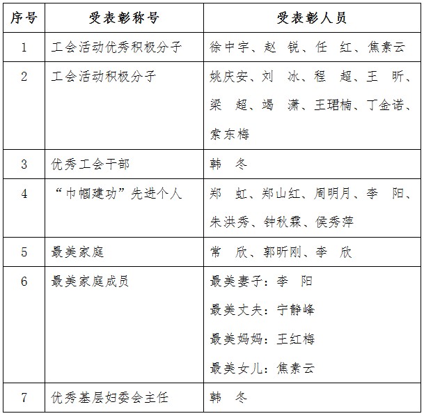 我院分工会被评为“先进基层工会”、妇委会被评为“先进基层妇委会”。