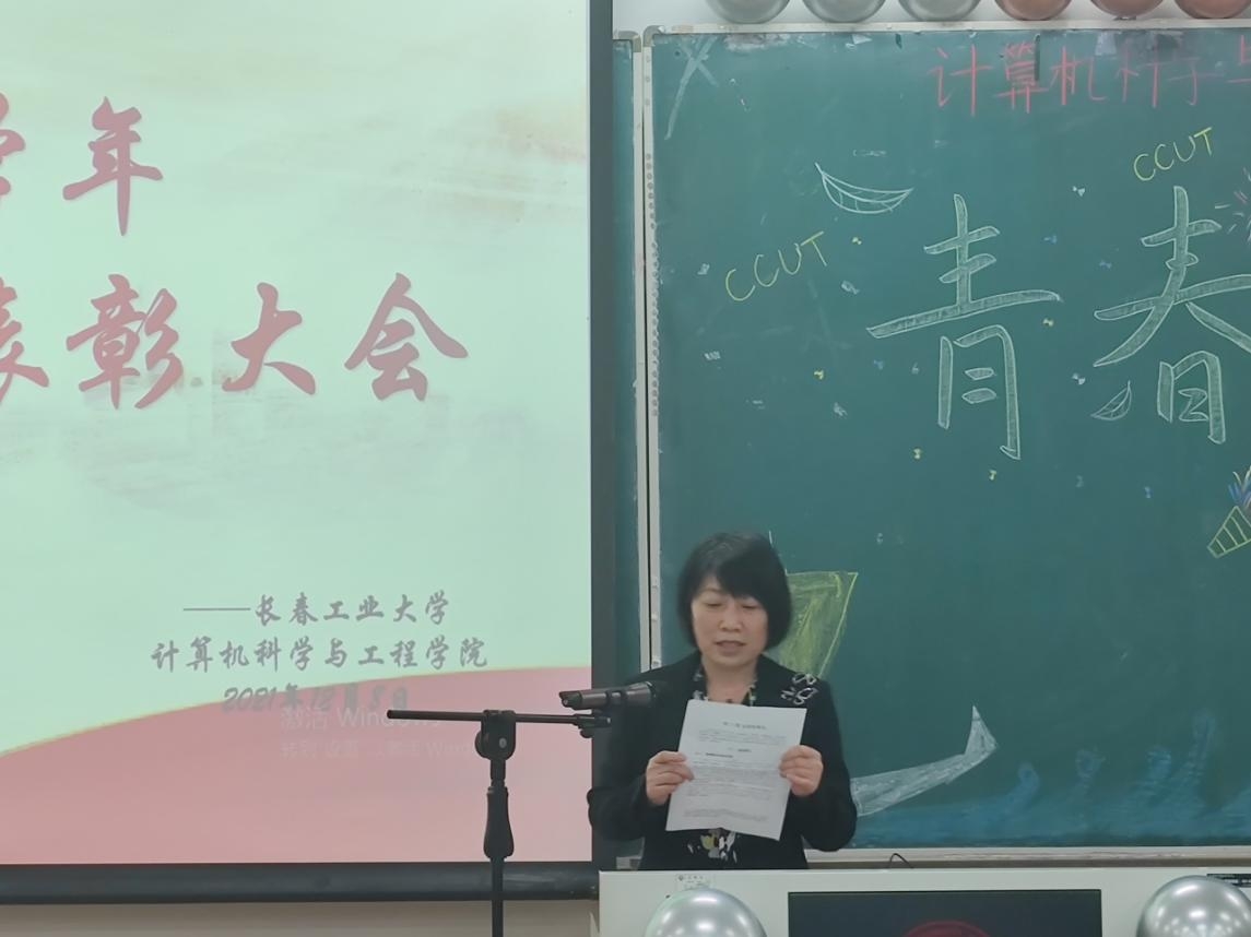 院长王红梅为荣获优良学风班集体的代表颁奖