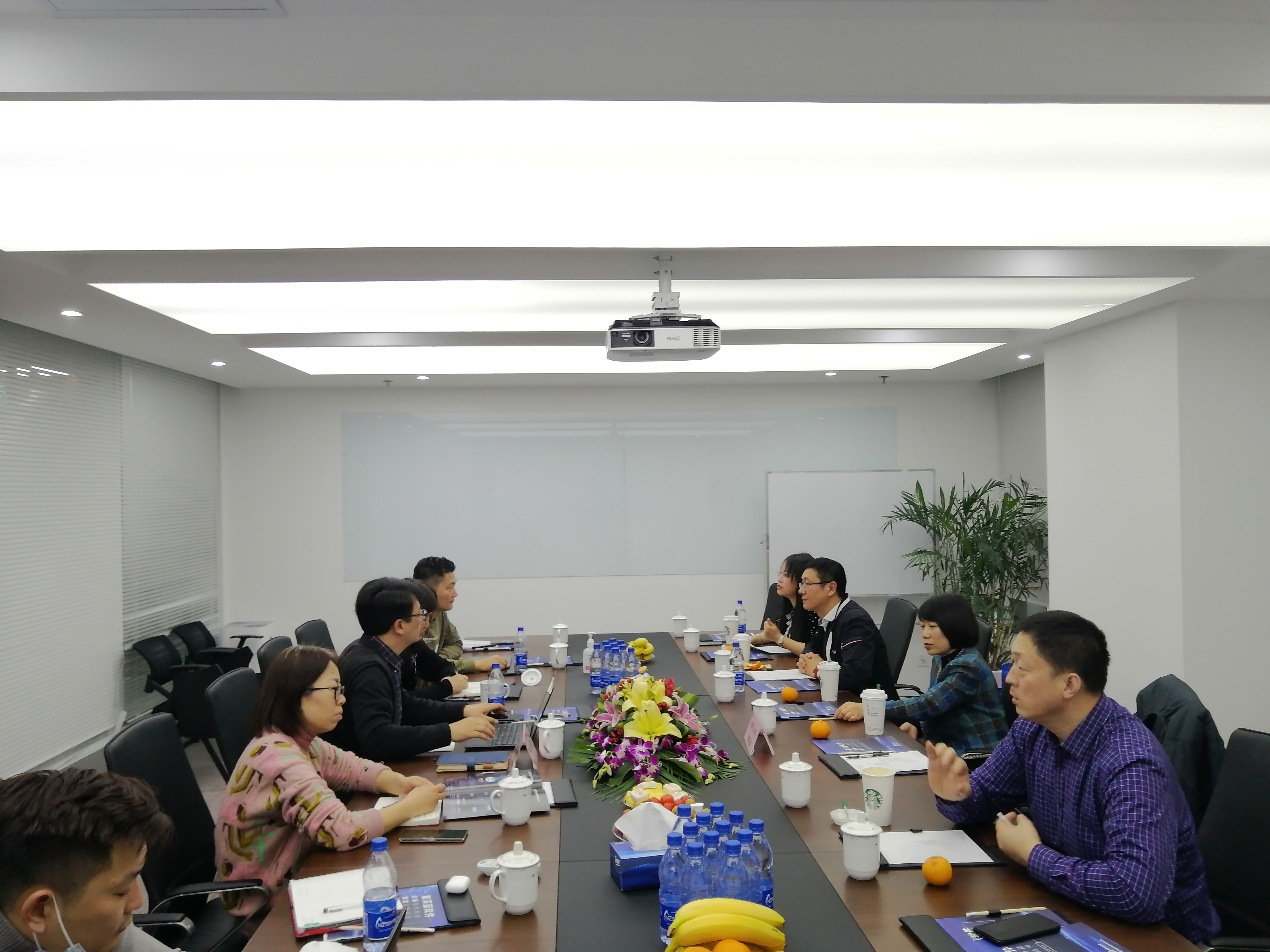 学院老师和企业代表商谈产学研深入合作