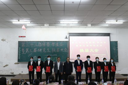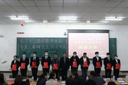 学院副院长郑虹、学院副院长鲁慧民为第三十二届研究生会部长颁发聘书