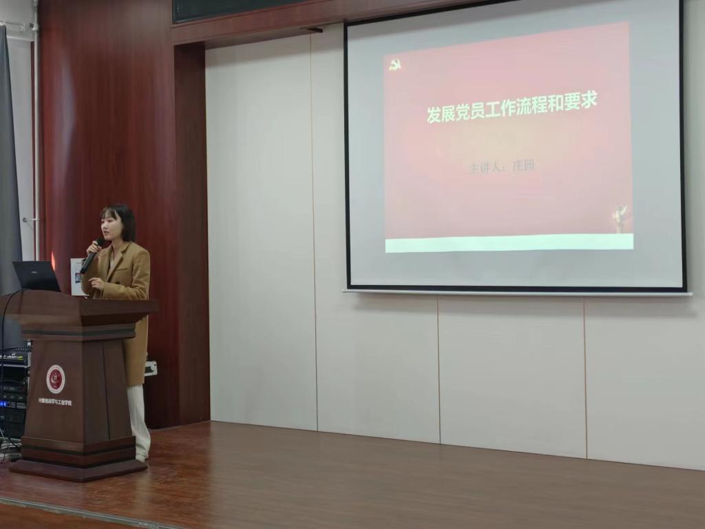 本网讯(通讯员 刘昊宇)为加强我院学生入党积极分子的培训工作,深化党的基本理论知识及教育。4月7日,我院在计算机楼323会议室召开了第十八届入党积极分子培训班开班典礼。学院党委副书记季宏伟、党委副处级专职组织员薛勇、学生第一党支部书记刘惠春、21级本科辅导员周扬出席了本次活动,学生第二党支部书记庄园主持了本次活动,第十八期学院党校学员参加了本次活动。