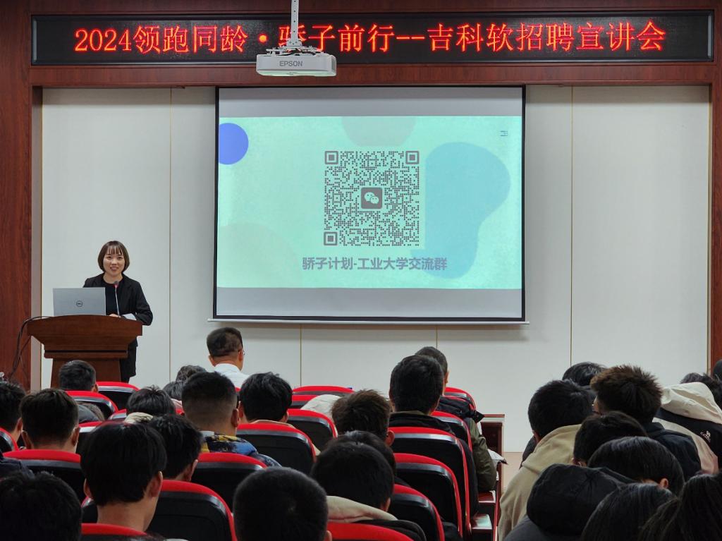 由学院党委副书记季宏伟主持的主会场还开展了吉科软2024骄子计划招聘活动。我院及相关学院100余名2024届毕业生积极投递简历并参加了后期的考核和面试。作为优质的校企合作企业,公司为我校毕业生提供了优越的待遇和保障。