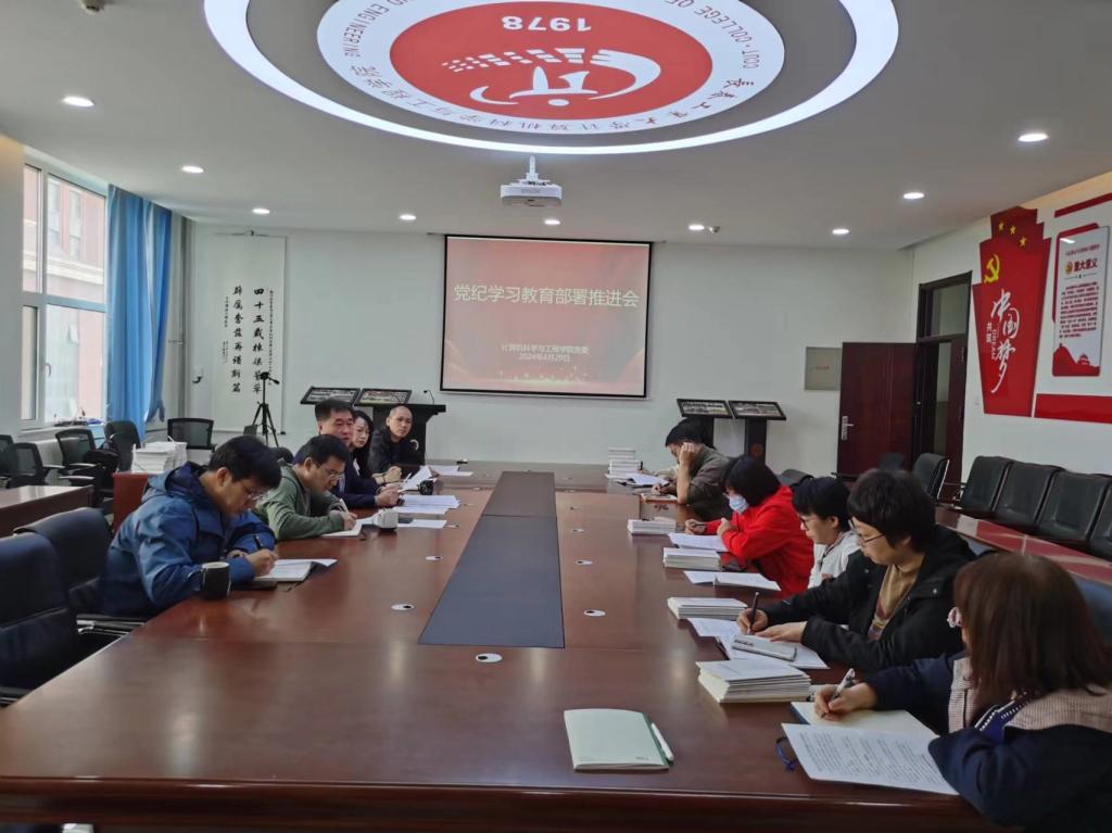 会上,学院院长程超传达了中共中央办公厅印发的《关于在全党开展党纪学习教育的通知》,学院党委书记周文明传达了学校党的建设工作领导小组扩大会暨党纪学习教育推进部署会议精神及学校党委书记孙长智在会上的讲话精神,并按照相关要求,研究部署了学院党纪学习教育工作。