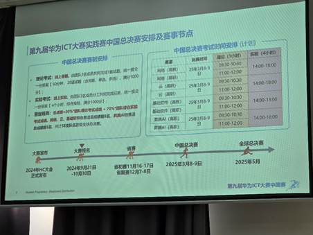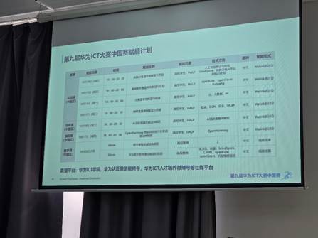 讲解会对华为ICT大赛进行了简要介绍。华为ICT大赛是中国高等教育学会认可的高含金量竞赛项目之一,是“全国普通高校大学生竞赛排行榜”中占据重要地位的学生竞赛,旨在推动ICT领域的教育和人才培养,为学生提供展示技能和创新能力的平台。