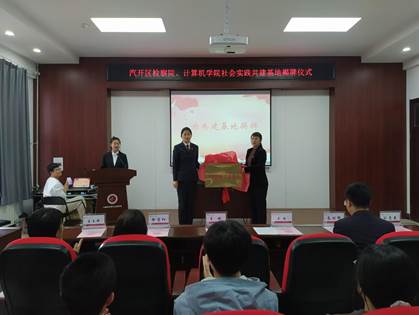 汽开区检察院第一检察部主任王丽与学院党委副书记王越共同为共建基地揭牌。在未来,双方将以共建基地为平台,共享教育资源,积极开展法治教育社会实践活动,普遍增强学生法治意识和防诈骗意识,帮助学生自觉抵制不良诱惑,建设平安和谐校园文化。通过共建活动,双方也将积极推进学生专业技能培养与检法实践结合,助力智能检务工作开展。