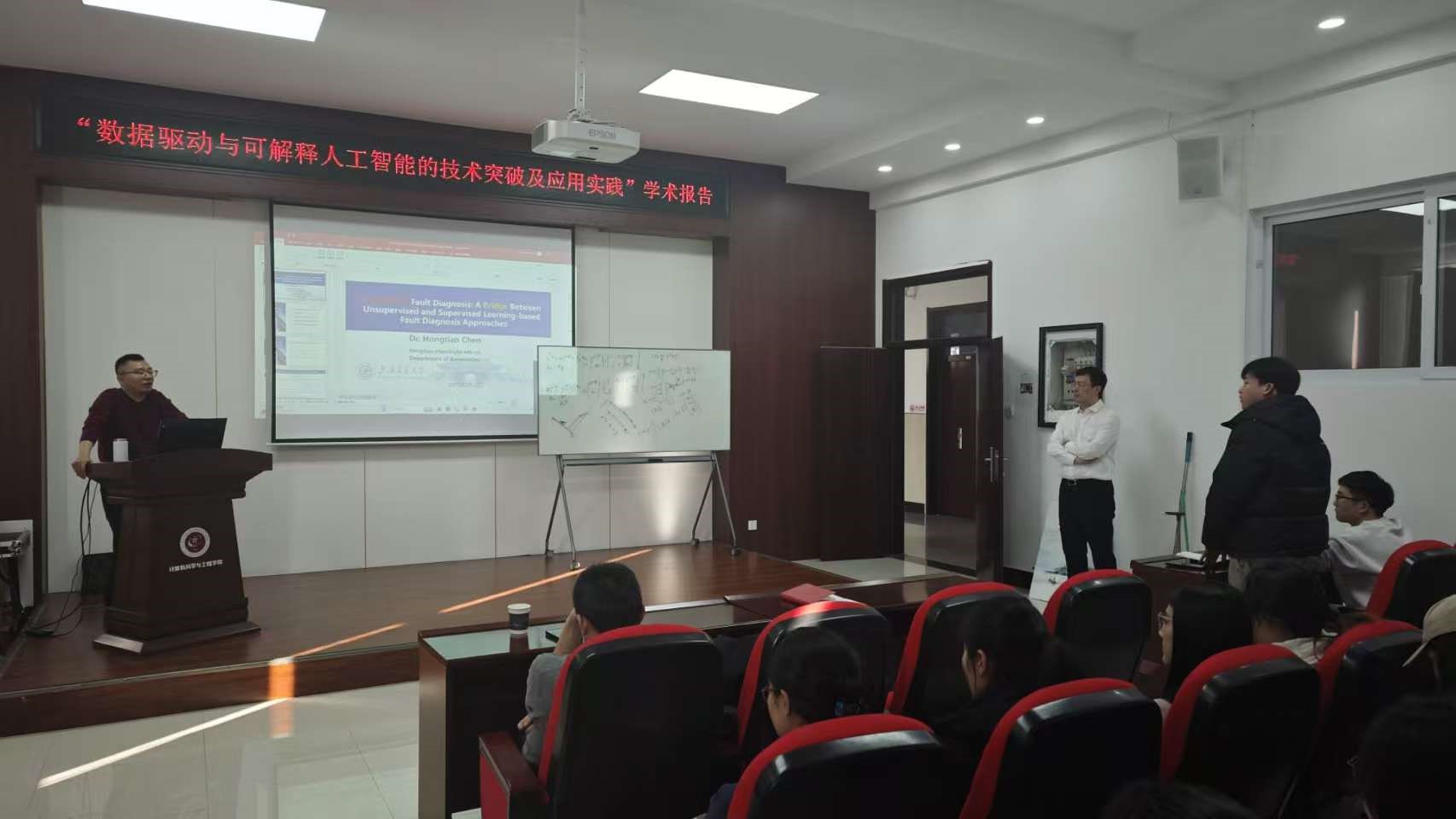 在讲座结束后,陈教授与在场的师生进行了互动,回答了他们关于数据驱动和可解释人工智能的各种问题。陈教授耐心细致地解答,不仅解决了听众的疑惑,也进一步激发了他们对这一领域的兴趣。