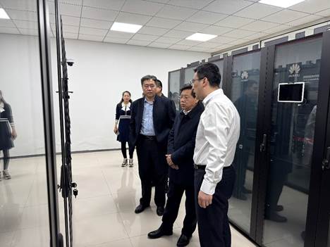 调研最后,陈书记来到学院计算中心考察指导。作为学院重要的科研教学支撑平台,计算中心配备了高性能计算集群、云计算平台等先进设施,为师生提供了从基础教学到前沿科研的全方位技术支持服务。书记对中心在人才培养和科学研究中发挥的重要作用给予了充分肯定。