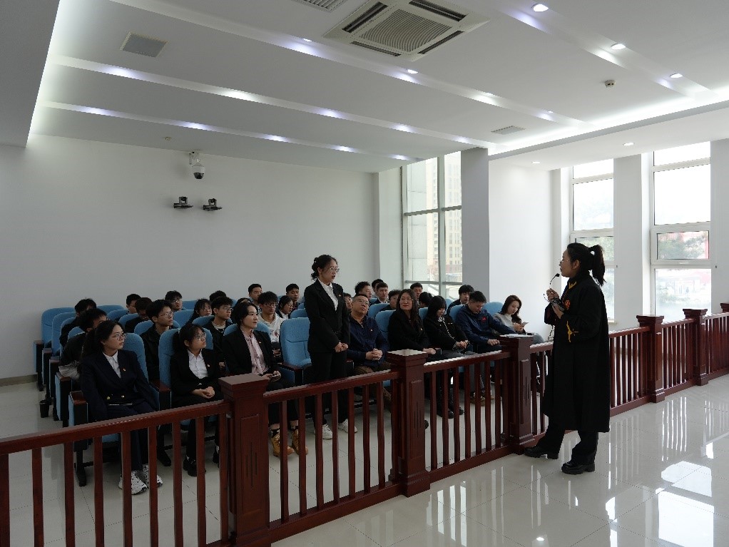 本网讯(通讯员 王馨悦)为深化检法机关与校院共建合作,推动法治教育与专业实践深度融合,4月17日,学院师生代表赴宽城区人民法院开展“明法笃行育栋梁,庭审为镜正初心”主题法治教育实践活动。本次检校共建法治实践基地首发活动,通过沉浸式司法体验、庭审观摩、互动问答等环节,创新打造“检察官+法官”双师实践课堂,进一步强化学生法治思维,以真实刑事庭审打破学生“技术无罪论”认知误区,促进法学理论与技术实践的交叉融合,真正实现“以案释法”,为理工科法治教育提供沉浸式育人方式。