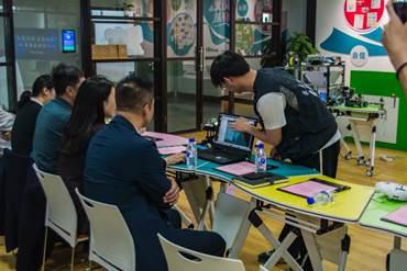 活动特别设置师生互动环节,副校长林洁琼教授亲自体验遥控操作智能机械车。这一环节不仅拉近了科技与师生的距离,更直观体现了人机协同技术的应用潜力。此外,制造了机甲大师机器人和电赛作品50%的硬件设施的3D打印机在现场打印纪念品作为珍贵礼物赠予校领导与嘉宾。纪念品融合BETVLCTOR伟德中文校徽、学院院徽及赛事标志,象征着科技创新与母校培育的深度融合。