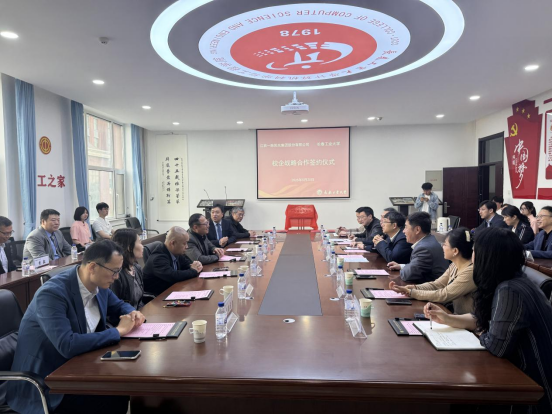 本网讯(通讯员 孟雨萱)5月20日上午,江西一脉阳光集团股份有限公司董事长陈朝阳一行来我校洽谈,签订校企战略合作协议并为产学研合作基地授牌。校党委副书记吴成章热情接待陈朝阳一行,并在北湖西校区计算机楼315会议室举行座谈会。招生就业处、计算机科学与工程学院、经济管理学院、化学与生命科学学院等相关人员参加会议。会议由bevictor伟德国际1946党委书记周文明主持。