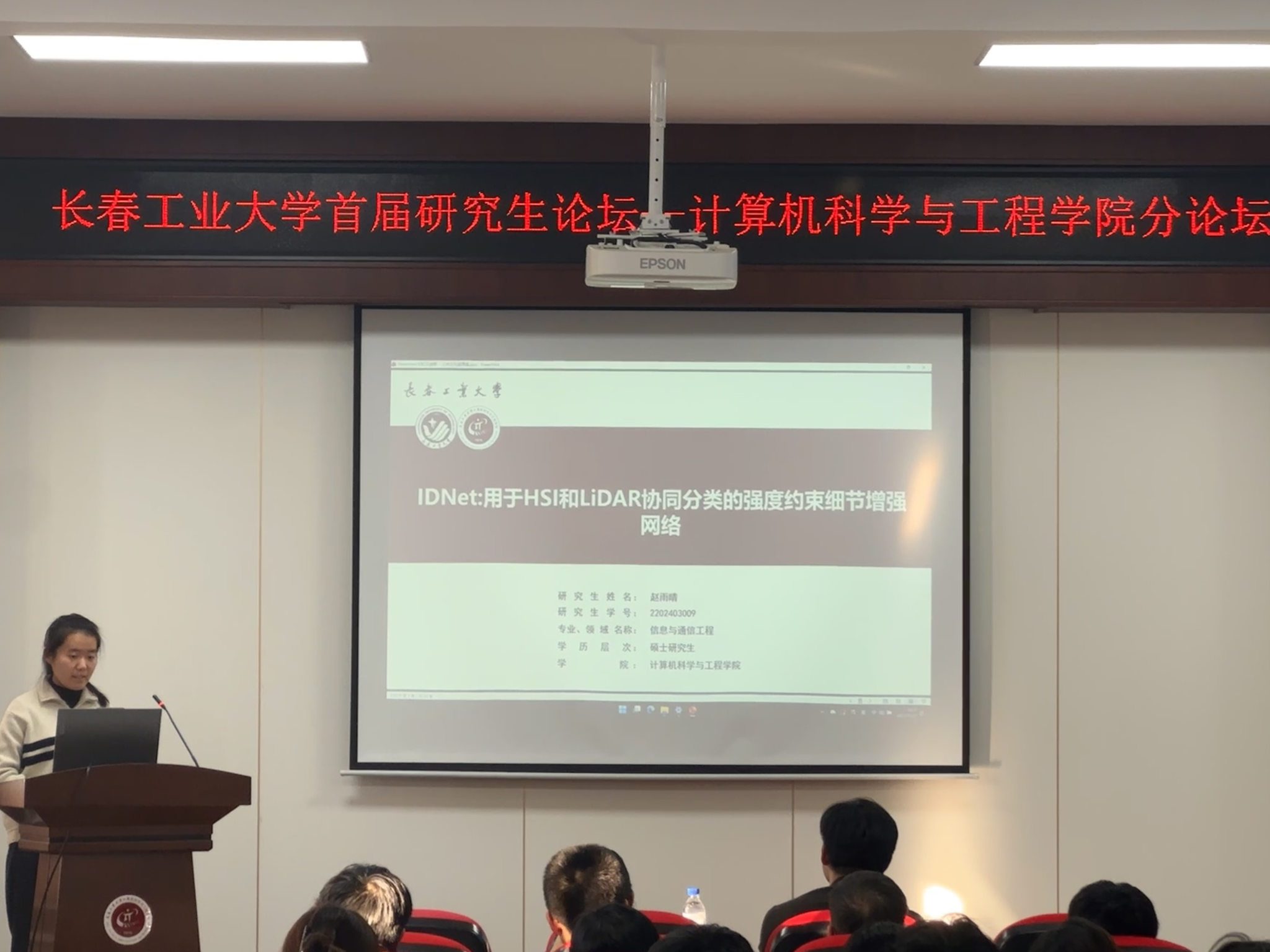 研究生报告环节中,2023级学生张泽兴、付玉鹏、梁佳泉、赵雨晴、赵庆昕,分别围绕语言模型向生理信号的跨模态迁移、膝关节MRI组织分割的深度学习应用、复杂数据结构的超图遗忘学习、高光谱与激光雷达协同分类、大模型赋能的多模态生物识别等领域,就各自取得的最新研究成果进行了汇报,充分展现出青年学子在多模态智能与跨域感知交叉学科领域的扎实科研功底与蓬勃创新活力。
