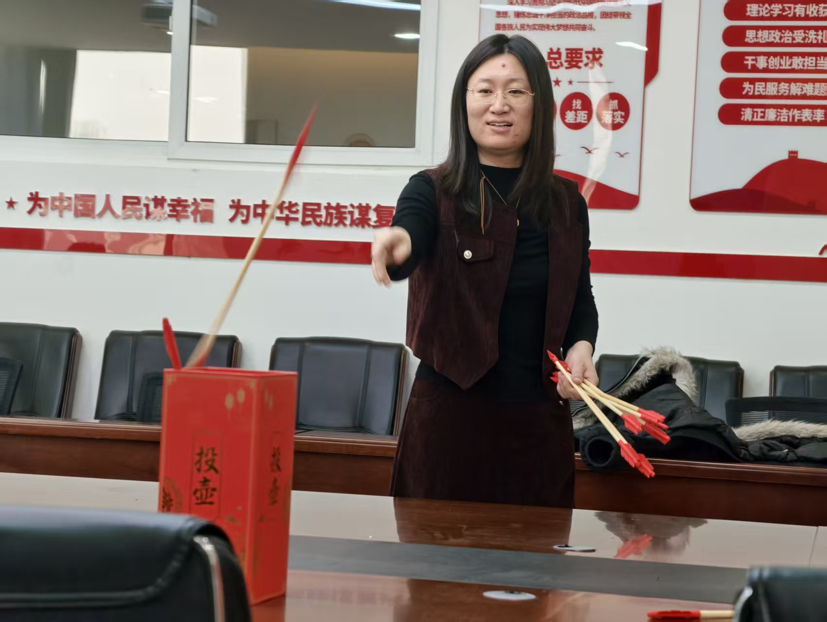 竹壶静立,箭矢整装,一场穿越千年的传统礼仪复刻于此。每一次抬手投掷,都是对传统的致敬,对精准的追求。箭矢在空中划出优美的弧线,唯有完全飞入壶内、不弹出分毫,方能算作有效得分,每一支入壶的箭矢,都是专注力与控制力的绝佳证明。老师们在箭矢与竹壶的相拥中,体悟古人的雅趣,传承民俗的韵味。