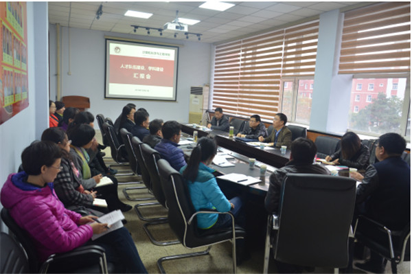 会上,王宏志院长代表学院对我院人才队伍建设和学科建设在十二五期间的发展情况、目前存在的问题及十三五期间的目标和主要措施进行了汇报,校领导和参会教师进行了充分的交流,对目前存在的一些问题进行深入探讨,提出了宝贵的意见和建议。