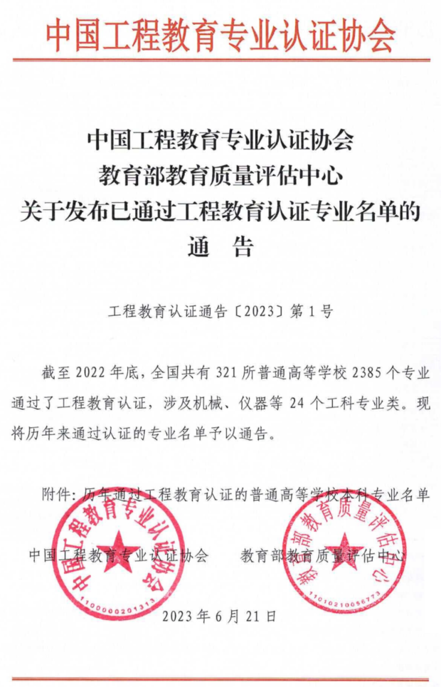 本网讯(通讯员:刘钢)中国工程教育专业认证协会、教育部高等教育教学评估中心近日发布《关于发布已通过工程教育认证专业名单的通告》(工程教育认证〔2023〕第1号)。《通知》指出,我院计算机科学与技术、软件工程专业以有效期6年(2023年1月-2028年12月),有条件通过国家工程教育专业认证。此次认证通过,标志着计算机科学与技术、软件工程专业的人才培养质量已达到国际实质等效的工程教育标准及要求,为该专业学生走向世界提供了具有国际互认质量标准的“通行证”。