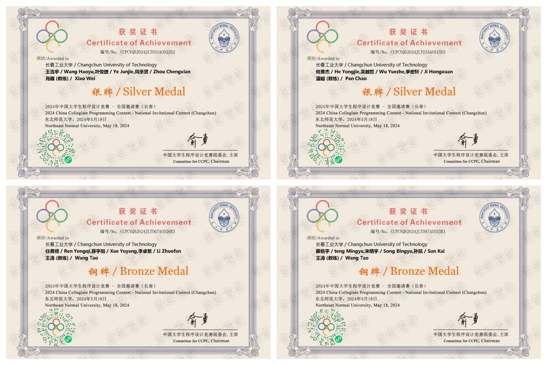 本网讯(通讯员 赵珂伊)为深入贯彻落实国家“十四五”数字经济发展规划,服务吉林省“数字强省”战略,深化创新型信息技术人才培养,2024年吉林省大学生程序设计竞赛(第17届CCPC吉林赛)于5月18日圆满落幕。我院ACM实验室同学积极参赛,在两项赛事中取得优异成绩,充分展现了我院在算法设计与实践育人领域的突出成效。