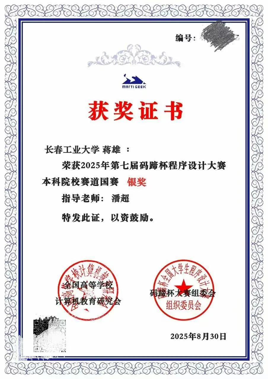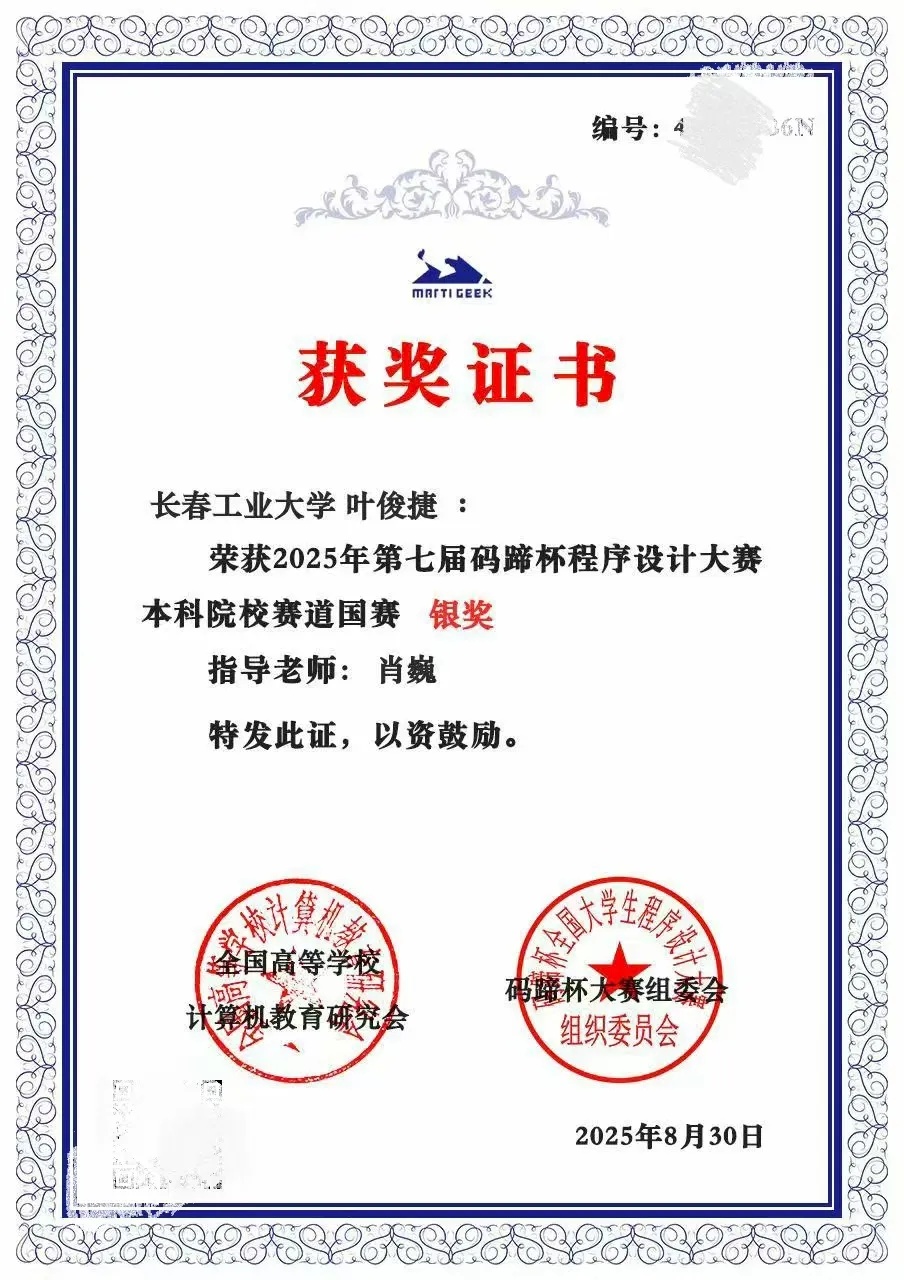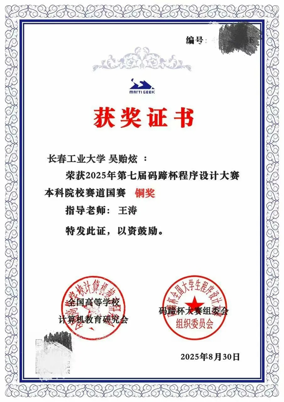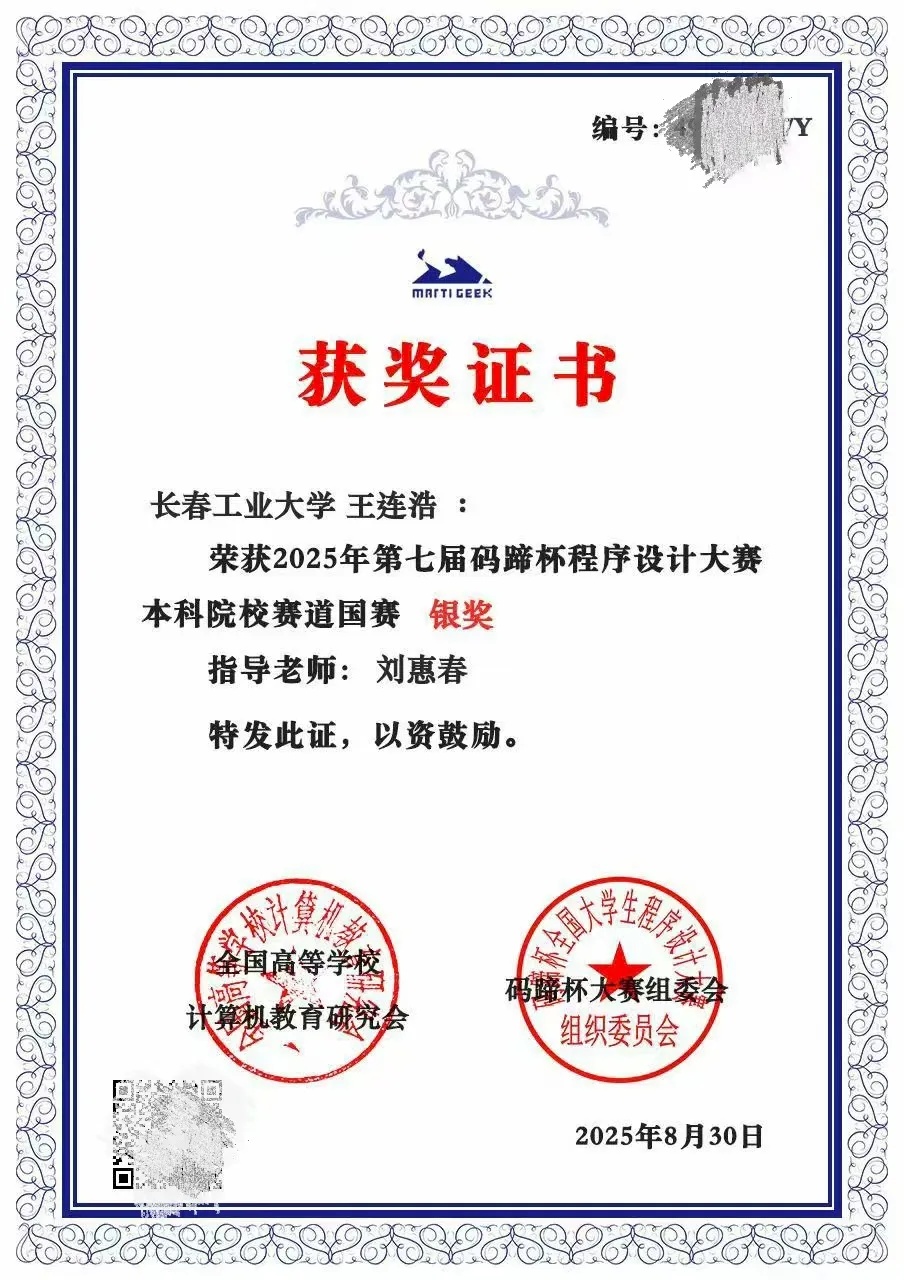 本网讯(通讯员 王连浩)近日,2025年第七届码蹄杯程序设计大赛本科院校赛道国赛结果正式公布。bevictor伟德国际1946青年学子凭借扎实的专业功底、出色的编程能力与稳定的赛场发挥,在赛事中脱颖而出,斩获3银、1铜,充分展现了学院青年在计算机程序设计领域的优秀素养与竞技实力!